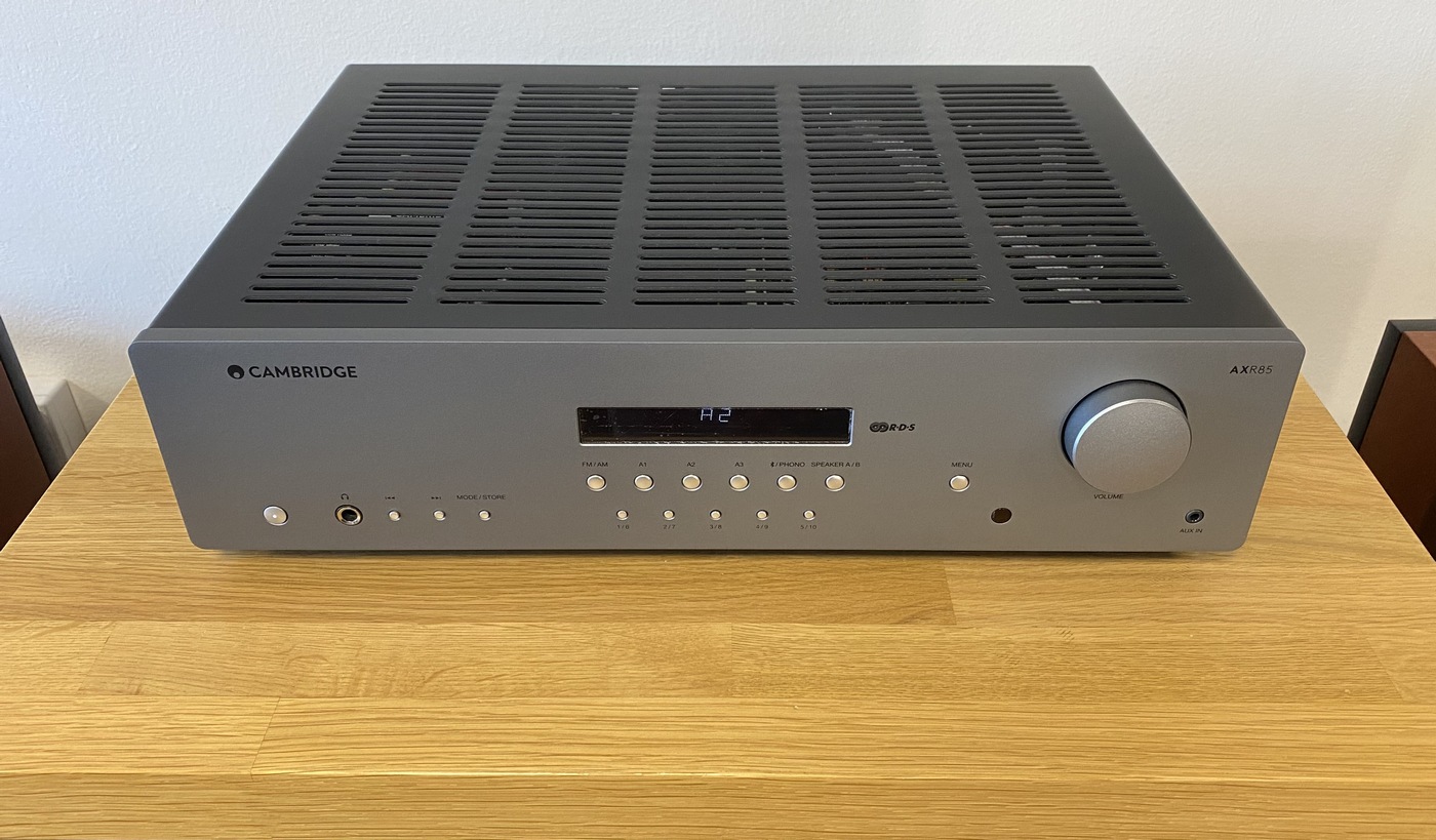 - Cambridge Audio AXR85 Hi-Fi Audio stereo receiver - integrovaný zesilovač, phono/gramofonový předzesilovač a FM/AM tuner lunarní šedá